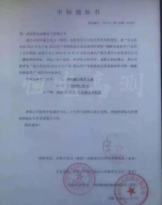 ? ? ? ?在“包頭供電局2018年生產(chǎn)處-固定資產(chǎn)零購(gòu)批復(fù)自采設(shè)備材料采購(gòu)(調(diào)度自動(dòng)化類)”項(xiàng)目中,我司自主生產(chǎn)研發(fā)的產(chǎn)品在眾多同類產(chǎn)品中脫穎而出,獲得了客戶的青睞,成功中標(biāo)此項(xiàng)目的3個(gè)段標(biāo)。近期備貨已完成,即將安排發(fā)貨。